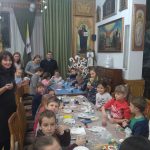 Після спільної молитви присутні мали нагоду побачити сценку, в якій були тільки позитивні герої. А через деякий час до зали увійшов довгоочікуваний гість – святий Миколай. Святитель уважно вислухав вірші та пісні, які йому приготували дітки та обдарував усіх солодкими дарунками.