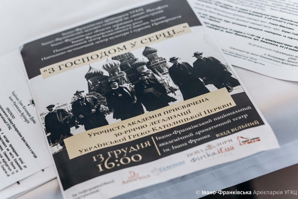 Окрім того, о 16:00 у приміщенні франківського драмтеатру відбудеться урочиста академія «З Богом у серці». Віце-ректор духовної семінарії, о. Андрій Черненко зазначив, що захід складатиметься з двох частин.